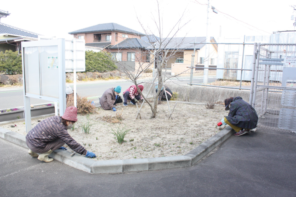 ただ、「強風でゴミが飛ばされている!」「まだ寒いので、花が売っていない!」というアクシデントも…!それでも、ゆっくり地区内を回って拾えるゴミを拾い、あたたかな春に向けて雑草取りをしました。